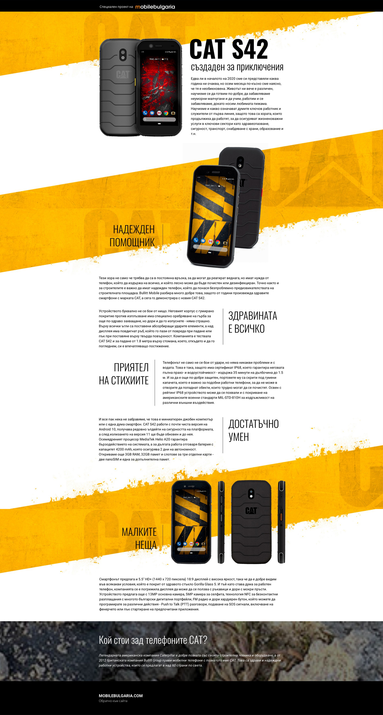 Wikipedia: A Cat Phone is a range of toughened and strengthened mobile phones, including rugged smartphones. They designed, developed, manufactured, and sold by Bullitt Mobile Ltd, part of the British telecommunications and consumer electronics technology company Bullitt Group Ltd, under exclusive license from Caterpillar Inc. since 2012.